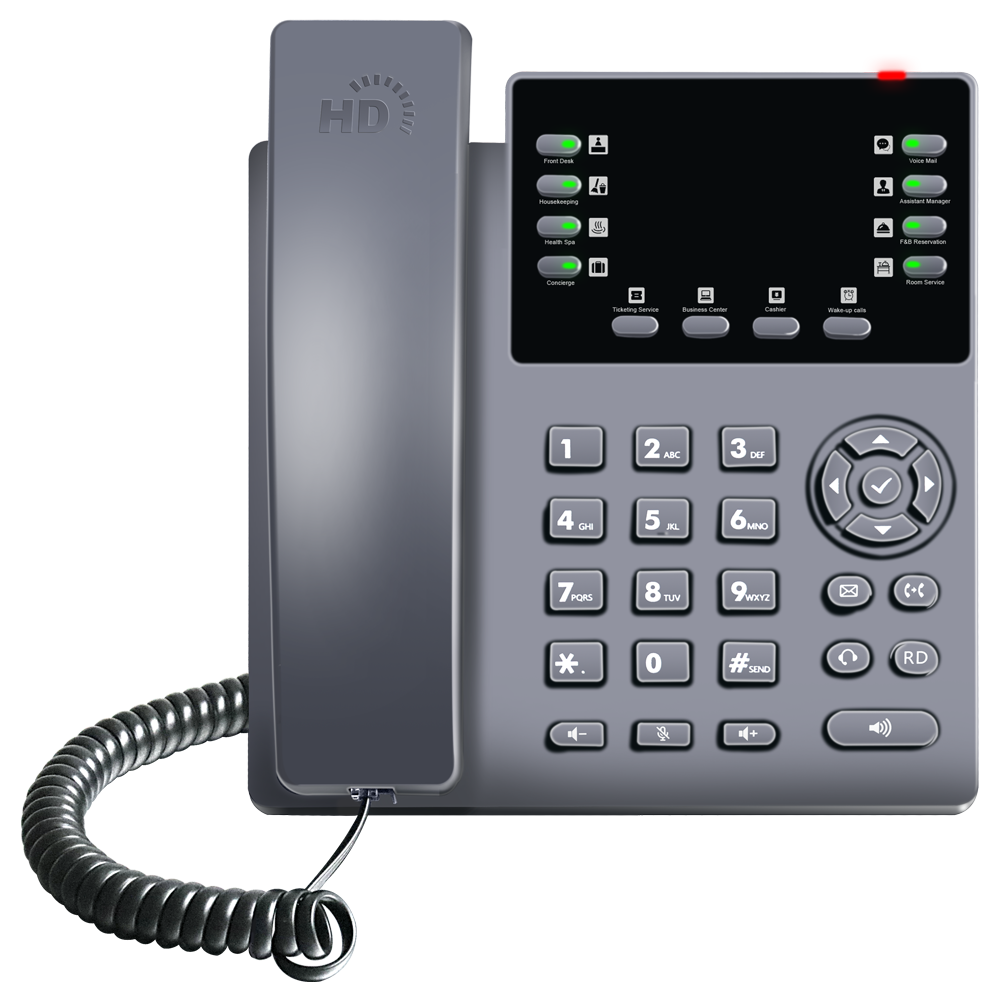 T801N系列酒店话机是一款专为酒店行业设计的高端IP话机,专注于提升客人入住体验和优化酒店通信管理。凭借其创新的设计和强大的功能,T801N系列为了酒店提供便捷、高效的通信解决方案,适应现代化酒店管理的需求。